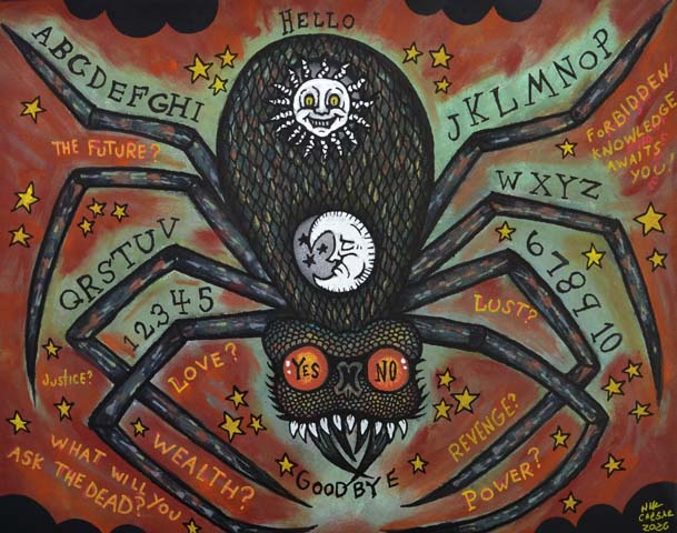 ![]() Spider Ouiji 16x20 Acrylic on canvas 2026 |